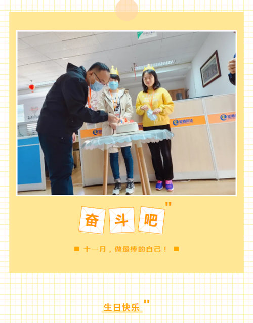 希望客服部所有同事在十一月、十二月能取得更好的、讓自己更滿意的成績,奮斗吧,十一月,奮斗吧,小伙伴們!