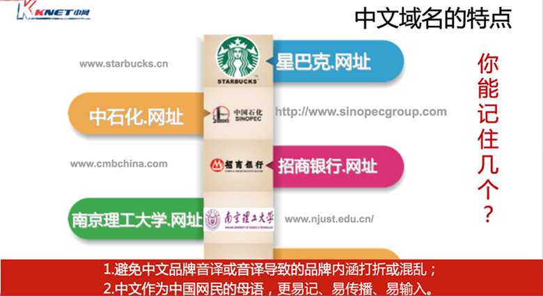 中文域名是經(jīng)ICANN批準的全球通用的國際頂級域名。相對于難以理解和記憶的英文域名而言,中文域名采用中文字符形式,更加符合中國網(wǎng)民上網(wǎng)習慣。