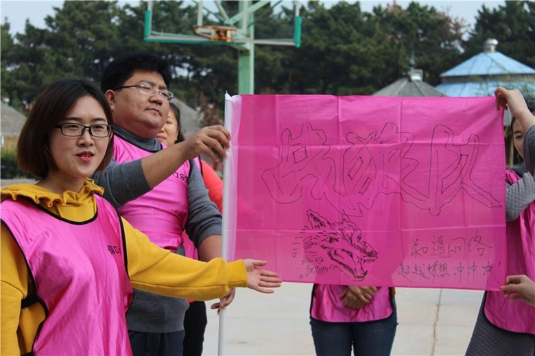 這是我們戰(zhàn)狼隊的隊長和旗手,隊旗是我們設(shè)計部頂級設(shè)計師丁孟瑋構(gòu)思設(shè)計,狼頭栩栩如生,展現(xiàn)著戰(zhàn)狼隊勇往直前的風(fēng)范。