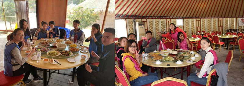 愉快的時間總是過的很快,又到了愉快的午餐時間,午餐是在基地特色的蒙古包里面,是一種不同的體驗,要不是外面有很多樹,真的會有在大草原上的感覺。