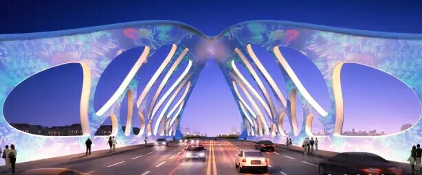 連島橋整體造型設(shè)計(jì)展現(xiàn)了青島海洋文化特色,橋梁整體造型采用珊瑚拱形鋼結(jié)構(gòu),將寓意
