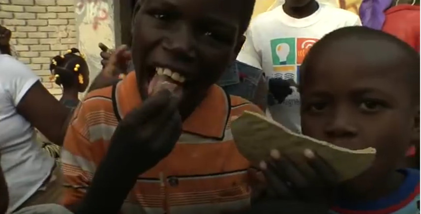 在海地,人們將濾去碎石和土塊的泥漿加入鹽攪拌,并用勺子把厚重的泥漿攤成餅狀,然后把它們放在太陽下曬干。在當(dāng)?shù)氐氖袌?chǎng)上六毛錢可以買5個(gè)泥餅。