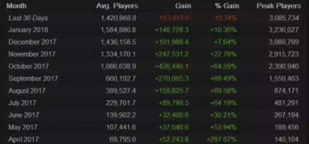 《絕地求生》在昨天公布了Steam平臺(tái)的銷量,這款游戲已經(jīng)蟬聯(lián)了50周的銷量冠軍,但是根據(jù)外媒的統(tǒng)計(jì)數(shù)據(jù)顯示,最近一個(gè)月的用戶數(shù)量已經(jīng)出現(xiàn)下滑,這個(gè)17年的爆款游戲在18年初似乎就要出現(xiàn)下滑的趨勢(shì)。