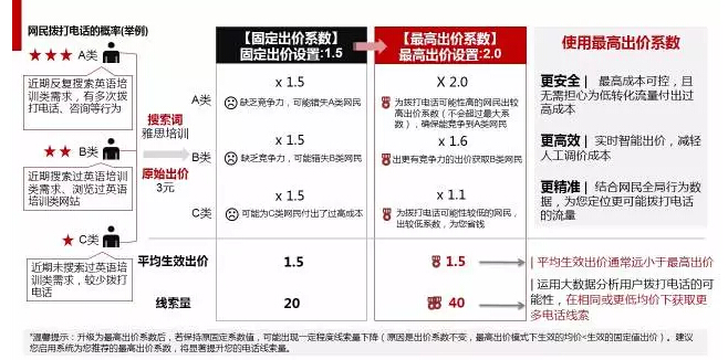 2、電話出價系數(shù)由固定值升級為最高出價系數(shù),請上調(diào)系數(shù)以避免錯失