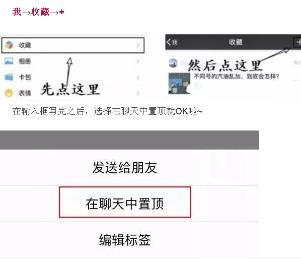 說明里說是收藏筆記,但小編用下來感覺,這就是一個(gè)備忘錄?。『唵蔚恼f,你可以在微信里添加一個(gè)備忘錄,然后置頂在聊天記錄的頂部,時(shí)時(shí)刻刻提醒自己!