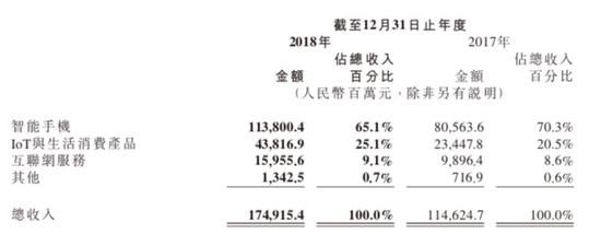 分析小米2018年營收構(gòu)成,可以看到其主要收入來源依然是手機業(yè)務(wù)。