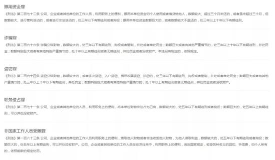 除了被公司辭退,在法律層面腐敗犯罪究竟會(huì)面對怎樣的刑罰?北京師范大學(xué)中國刑法研究所副所長彭新林此前表示,在2014年到2017年,民營企業(yè)腐敗犯罪中,共包括15個(gè)罪名,其中最主要的就是單位行賄罪、職務(wù)侵占罪、挪用資金罪、非國家工作人員受賄罪和行賄罪。
